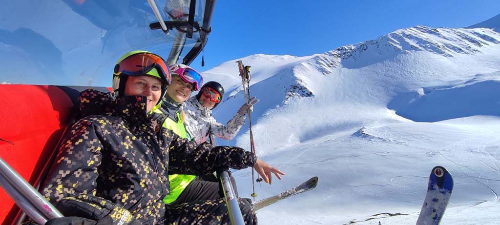 Группы были небольшими, но это позволило каждому уделить достаточно много времени. Первая мини-группа состояла из трех девушек, а вторая — из семейной пары. Занимались на склоне ежедневно и индивидуально с каждым по 2,5 часа. С теми, кто был на обучении у меня впервые, проходили базовый курс большого радиуса, а с теми, кто повторно, — базовый курс малого. Все ребята хорошо справились со всеми упражнениями и повысили свое горнолыжное мастерство.